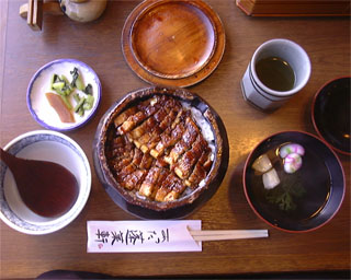 で、最初に煮込みうどんの強烈な洗礼を受けた僕が次に食べたのが、「ひつまぶし」です。と書いてもたいていの人は分からないと思うので簡単に説明しますと、要するにうな重に出し汁をかけて食べるお茶漬けみたいなものです。こう書くとなんかあんまり美味しそうではありませんが、実際に食べてみたら結構美味しかったです。お店(蓬莱軒といって有名な所:地元人談)の但し書きによると、最初は出てきたうな重を直接食べて、次は薬味をかけて混ぜて食べるそうで、その次に出し汁と薬味をかけて食べるのが王道なんだそうです。確かのこうすると1回で3度美味しくてお得な感じでした。名古屋の食べ物は深いっす。