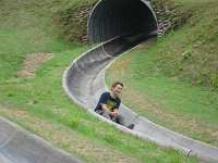 オフ2日目、雨も降らずボブスレーに乗ることができました。金谷山公園ではBBQもできるのですが、 テントを張って宿泊できないのが残念です。ボブスレーに乗らず、徒歩でコース外周を歩いている人 もいました。本人曰く、「ソリが私のサイズに合わないから乗れない。」ということでしたが・・・。(笑) |