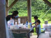 炭火も落ち着いてきたのでBBQ開始です。今回は、特製カレーの準備もされてました。キャンプといえばカレーが 定番ですが、HFC新潟オフでは初の試みではないでしょうか?肉も焼けたのですが、食欲が沸きません。前日まで 輪島での仕事の申し受けやアパート探しで動き回ったり、輪島から殆んど休憩なしで6時間の長距離運転で体が 参っているようです。缶ビール1本で急に疲れが出てきました。(汗...) | ||