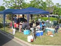 まことさん、爆睡してます。一旦起きましたが「眠て〜!!」と叫んで地面に転がってました。昨夜どんだけ飲んで何時 まで起きてたんでしょうか?今回一番のお寝坊さんです。(笑) | ||