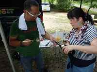 12時40分過ぎに到着し、チェックインして薪、カセットガスを購入しました。昨年と同じ場所のサイトで設営しま したが今回は、少人数なのでコンパクトな規模です。テーブルにご当地一番搾りが並びました。けんたっちや 参加者からの差し入れです。 | ||
