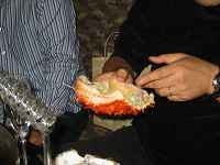 大きな蟹なので皿からはみ出てます。身もギッシリ詰まっていて食べ応えがあります。足を切った箇所から旨みが抜けてしまうかと思ったのですが大丈夫でした。食べているときは、皆無口になってむさぼっていました。(笑)