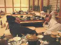 今回の宿も「みなみ家」さんです。お風呂にはいって食事の時間まではノンビリしてました。長旅とスキーのため 疲れがでたせいか、payforeさんはマッサージ機にハマッています。(笑) 昨年初めてきたとき、宿がきれいで食事 がうまいという印象が残っていたのですが、それは気のせいではありませんでした。次から次へと料理がでてきた のでボリュームもあり、感激しました。おいしかった〜〜。 | ||