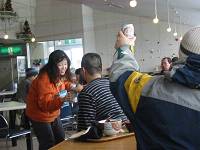 1本しか滑っていないので汗もそれ程かいてないのですが、ビールを飲んでしまいました。ソーセージもおいしくて ビールが進みます。パーティーセットを一人で食べる人やソースカツ丼を注文した人もいます。昼食にはまだ時間 が早いと思ったのですが・・・。 | ||