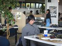 とおみゲレンデまで滑り、いいもり第6ペアリフトに乗っていたら、さこちゃん達に発見されました。パウダーコースで 合流し、FOXさんに連絡をとると昨年寄ったクレープ屋にいるようです。さっそく向かうとすでに食べ終え、休憩して ました。 | ||