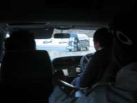 駐車場に行くとシャトルHIACEが迎えに来てました。ホントに助かります。けんたっち号に乗車し、五竜の駐車場に 向けてゲレンデの方向を目視で確認しながら国道を避けて走行しましたが・・・。 | ||