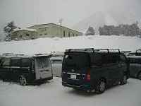 BIG HIACEさんが先行してスキー場に向かいました。買い物の後、関西組に遅れて出発しましたが「道の駅小谷」 を過ぎた道幅の狭い道路で2台先のチェーンを巻いたトラックがスリップして立ち往生してました。しばらく前に進め なかったのですが、前の車がスリップ車をかわして進んだのでそれに続いて走りました。関東組が既に到着して おり、先に走るメンバーとの無線でのレポートを聞いて状況を把握しながら走れました。皆から少し遅れて9時頃 五竜とおみの駐車場に到着しました。 | ||