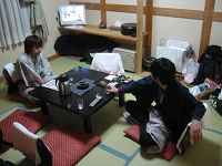 荷物を部屋に運び、早速風呂です。露天風呂にゆっくり入り、体の疲れ、コリもとれ気持ちも安らぎます。風呂から 上がり、部屋に戻って一休みです。夕食の時間までマッタリしてましたが長旅の疲れか爆睡している人もいます。 | ||