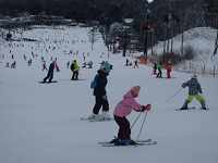 ゲレンデも混んでますが、皆気合いを入れて滑りました。ゲレンデ下部は、雪が重いので、とおみ第2ペアリフト に乗ってゲレンデ上部をメインに滑りました。 | ||