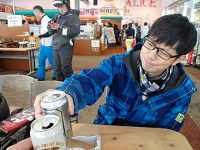 | 珍獣その2が横取りしてます。(笑)私も少しいただきましたが、温まります。yoshiさん達も合流し、改めて乾杯 しました。私も飲みモードに入りかけでビール350缶2本目に手が出ちゃいました。(笑) | ||