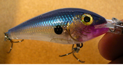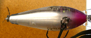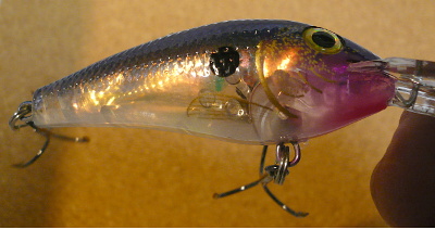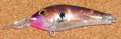 ボディシェイプはファットラップというよりもラトリンファットラップ(RFR)とそっくりに見えますが(どっちもシルエットは同じだって!(^^;)、グラスシャッドラップ同様に透明ボディ(グラスフィニッシュ、という)にラトル入りで、尻振りアクションからラトルサウンドを響かせ、また丸いボディとスクウェアリップで根がかり回避性能も高いといいます。 上の写真のように、ほんの少しボディを傾けるだけでホログラムフィルムで包まれたボディの色は変化するため、水の中でもきらっきらっと輝きながらアクションするんでしょうね。 おかげで、下のカラーチャート用の写真でもしっかりした色の再現ができていません。 また、ボディ下部はシルバーっぽい塗装になっており、ここは透明ではありません。 私のようなラトリンファットラップファンには注目の一品でしたが、店頭でもあまり見かけないうちに消えてしまい、幻に近いラパラとなってしまいました。 |