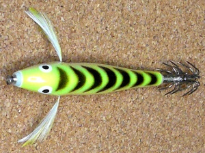 ベルベットスクイッドVSQと兄弟ルアーで、こちらのボディは硬質パール仕上げできらきら光りますが、模様はエアブラシで描いたように粒子が大きく、まるで布張りと見間違うような仕上げでぼやけて見えます。 形的には日本の餌木(スッテ?)にあるようなちょっと頭回りがファットなデザインになっていて、エビの足のようなヒゲも付いています。 もちろんフックは2段餌木用フックです。 パールスクイッドに関する情報は大変少なく、更に発売から短期間で廃版となってしまったので、ルアーの詳細なデータもカラーバリエーションも今一つよくわかっていません。 私も今までに一つしか入手できておらず、VSQ以上にほとんど市場に出回らなかったのではないかと思われ、超が付くレベルで幻のラパラの一つです。 | |||||