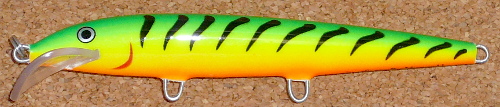 オリジナルフローティング11pのバルサボディにスキャッターリップをくっつけたもの。 素直に動く系のミノーが大きく左右にアクションするようになると、いったいどんな動きになるのか見当つかないので早く使ってみたいところですが、サイズが1種類しかないことから対象魚は限られそうですね。 さらに11pモデルながら9gしかないというやっぱり「F」なモデルなので、キャストするタックルを選びそうです。 |