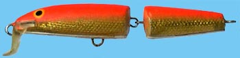日本では'81年登場ですが、BASS PRO SHOPSでは'98発売のニューモデルとして売りに出たりしてます。 実際はときどきぶわっと作って卸された「再発売」のようですね。 CDJに限らず、ラパラでは定番ルアーを一度にどばっと作って世界に供給してはしばらくお休みを繰り返してるみたいで、市場にはいろいろ出回っていてもカタログ上はモデルが消えているなんてこともざらです。 '81年の発売当初にはCDJ7,9,11 の3モデルと S,G,B,GFR,P の5色が出たようです。 形状としては、カウントダウンをジョイントにして、シャローシャッドラップのような曲がったリップを付けたって感じのものです。(^^;)。 形は普通のCDより少し横に扁平っぽい気もしますが、フローティングのジョインテド(J)より何となくスマートな気がします。でもほとんど気がしただけ(^^;)。 使ってみると、フローティングモデルより少し重量があるので飛距離が稼げますし、リトリーブスピードによってはフローティングとほぼ同じ層を辿りますので、オカッパリで水面近くまでウィードが生えたところなど、水面直下をファストリトリーブで狙うには適したモデルではないでしょうか。 あまり大きな声では言えませんが、こいつも結構隠れた愛好者が多いようですね。 特にシーバスフィッシングでは活躍しているようです。 なお、2015年以降カタログではCDJ7のみになっていますが、時折入荷してはひっそり告知、という形をとっているためカタログやウェブサイトに出ていないモデルも出荷されております。 |