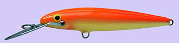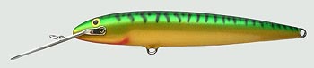 確認できていませんが、1974年以前から存在する、クラシックラパラの一つです。 当初は13、18cmモデルがあり、カラーはもちろんオールドラパラ基本色の G , S , GFR , B の4色でした。 当時のカタログでは特別にカウントダウン(CD)と区別がなく(FMAGも同様)、使い方などでは「マグナムラパラ」とFMAGとも一括りで扱われておりました。 とにかくフローティングの「マグナム」シリーズと比べても最大サイズのばかでかさが段違いのこのルアー、メインフィールドは当然海でのビッグゲームでしょうね。 とはいっても、小さいものは7センチモデルからあり、このあたりだと淡水の釣りでも結構使えますね。 なんといっても、重量があってロングキャスト&深いところをファーストリトリーブができるのがよいでしょう。 特徴としては、その金属のがっちりしたリップでしょうか。