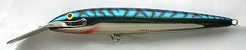 スライバーやSSマグナムと共通のようで、実はそれぞれ独自のリップらしく、ビッグサイズになると片側二点ずつの固定となっています。しかも、溶接点のない強固なリングが、リップを強引に曲げただけとも言えるアイにしっかり固定されていて安心感ばっちりです。 この金属リップには年代毎の特徴があり、写真の3タイプでは右から古いモデルで、リップの形状はほぼ変わりないものの、リングの違いやリップに刻まれた文字に違いがあるのが判ります。 ボディは硬質ウッドとの表記もありましたが、2015年頃からアバシ材であるとの表示が使われるようになっています。 また、CD9MAGはジャパンスペシャルだったとの情報もあります。(未確認) でも、26センチもあるルアーで何が釣れるんでしょう(^^;)。 ブラックバス狙いだけでは、持ってはいても使う機会がいつ訪れるかさっぱり当てがないです。 もっとも日本では大きい部類のものはあまり売っていないですが、ラパラファンとしては使わなくてもでっかいのを部屋の飾りのために、一つ買っておくのも良いですね(^^;)。 '00年には、ボディをステンレススチールでコートしたモデル「カウントダウンステンレススチールマグナム(CDSSMAG)」が登場しています。 モデルコードが違いますが、ボディに変わりがないのでここでは同じ項目で紹介しています。 それより以前に出たシルバープレーテドシリーズが海水に弱く、すぐ白濁してしまう症状があったため、それを改善する目的で登場した物とも思われますが、ほんとにピカピカですごいです。 SSシリーズはフローティングマグナム(fmag)やノーマルのカウントダウン(CD)にもラインナップされております。 ただし、カタログ上のカラーラインナップ等はどんどん縮小し、2017年にはCD18MAG の2色のみの掲載となりました。 しかし、'04年頃から、どんどん掲載カラーが増え始めたことから、世界的規模で見るとなかなか人気のあるルアーのようです。 もっとも、常時作っているわけではないようで、欲しい時に探しても店頭に無かったりするモデルなので、お気に入りカラーは見かけたら買っておきましょう! | |||||