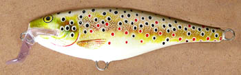 2004年登場のビッグシンキングベイトです。 私はほとんど売っているところを見かけてませんが、見ても次の週にはなくなっていました。 とはいえ、全長14cm体高4cmのビッグベイトですから、使えるフィールドは限られてくるでしょうね。 海でもおいそれとキャストは出来ません。 とか言いながら、ショアで50〜60cmくらいのシイラ狙いで使ったことがあります。もちろんキャッチできましたが、ボートの上から高速トゥイッチすると、この重量でも水面へ飛び出してしまいます。まぁ、キャスティングして少し沈めて使う、という使い方をするべきルアーなのですが(^^;)。 実際、スーパーシャッドラップ14(フローティング)は、少し前にバスフィッシングでのビッグベイト流行時に結構使って良い思いした人もいるようで、その泳層違いモデルとして使えそうではあります。 ただし、ほんとロッドに付けてみると71gという重量は伊達ではないのが判りますので、タックルを考えないと、キャストと同時に糸切れでぶっ飛んでいきそうなルアーです。 でも、これ使って魚釣るとなかなかテンションあがりますから、是非使ってみてください! |