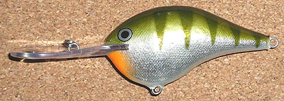 リップはとにかく横幅があって、その割に長さが短くてDT−16のリップはただの丸にすら感じられます。ただし、最近のラパラ主流のラインアイ金具になっていて、リップにオメガ(Ω)型のワイヤが埋め込まれているだけでボディまで貫通していませんので、橋脚などにがんがんぶつけているとリップが簡単に折れてしまいそうです。>キャストの下手な私の場合(^^;) また、このDTシリーズの売りでもあるラトルは、筒型のラトラーを横置きで配置しているのか、左右へ振ってみるとカタカタという、このサイズのラパラにしては割と高めの音がしますが、上下前後へ振ってもほとんど音がしません。 きっとボディが大きくウォブリングする用になっていて、それに併せてラトルがなるように設計されているのでしょう。 また、筒型であれば丸形に比べて体積も小さいでしょうから、バルサボディの浮力を少しでも損なわずにすむ工夫なのでしょうね。 なお、モデル名称の数字はボディサイズではなく「何フィート潜るか」で書かれています。数字×30cmなので DT4なら1.2m、DT16なら4.8mって感じですね。 2004年には小さいサイズのDT−6、DT−4('05?)も登場しましたが、こちらの二つはボディ長5cmのかわいいクランクになっています。 実際は5ミリほどの差がありますが、その差で重量は12g、9gと3gの差があり、リップも全く形状が違っていて潜行深度も50cmくらい差があります。 シャロー向きでなかなか都合がよいですね(^^)。 なお、2005年後期には2006年モデルとして前後フックにSureSetFookを採用したDTSSシリーズがオリジナルカラーで出ています。 こちらはフッキング性能が格段に向上しているだけでなく、ウィードを切ってリトリーブするのにも大変向いていて、なかなか良い感じです。 2008年10月には、ボディサイズはDTSS16と同じながら、同ウェイトでリップ形状等の違うDTSS14と、リップを大型化+金属ウェイトを埋め込んだDTMSS20が登場しました。 アメリカでは定番化しており、ラパラ契約プロの Michael "Ike" Iaconelli がカスタムした Ike's Custom Ink DT (Dives-To) Series が Bass Pro Shops 等で発売されています。 しかし、生産は徐々に縮小され日本ではDT4のみとなっていましたが、2017年1月DT14、DT16も一時復活、その後DT20以外はカタログ上復活しました。 (DTSSシリーズは消えた模様) | |||||