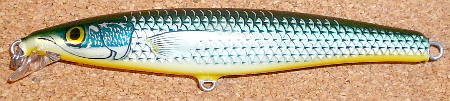 2002年ニューモデルとして、2001年後期より発売されたニューミノーです。 何がおニューって、ラパラ社初めての重心移動システムを内蔵している「バルサミノー」なのです!!「ただ飛ぶだけの重心移動システムなら必要ない」というコンセプトの元、今までのラパラと同じように安定したバランスと機敏なレスポンスを損なうことなく開発されたこのミノーは、当初10センチモデルが発売されましたが、2002年後期には強固なスプリットリングと太軸フックをセットした海用モデルのLC12も登場し、また、淡水用ではよりタイトなアクションの8センチモデルも加わって、ラパラの新しい時代のルアーとして、その位置を築きつつありました。 ただ、そのずんぐりむっくりしたボディラインとちっちゃなリップは、今までのフローティング、カウントダウンモデルとは大きく違うので、結構好みの分かれるところかもしれません。 そういえば、このちっちゃなリップ。ミスキャストして堅いものにぶつけると結構折れます。 また、海用モデルはすべて樹脂製アイですが、淡水用では'03年ニューカラーのGFR、FT及びジャパンスペシャルカラーのみ樹脂製アイとなっております。 時期ははっきり確認していませんが、カタログ落ちしてしまったようです。 廃版、ってことかな? | |||||