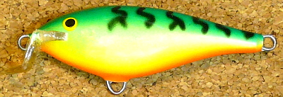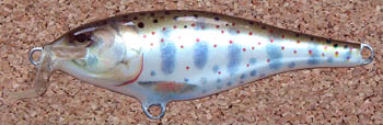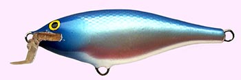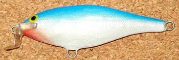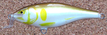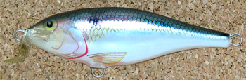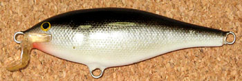 ラパラの有名バルサ製シャッドベイト、シャッドラップのシャローランナーモデルです。 日本での登場は'84年で 5cm、7cm が同時登場で、ディープランナーに遅れること1年。ですからほぼ同時の発売ですね。初期カラーはシャッドラップディープランナー(SR)同様 P , S , CW , SD の四色です。<BR> 特徴的なクランクみたいに曲がった小さなリップ(オフセットタイプというらしい)は、ホントにこれで効果あるんかい!という感じですが、シャッドラップ独特のあのくびれたボディが、水面下50センチ位を潜りながら結構ちゃんときびきび動き回ります。 ただ、重量が非常に軽いんです。もちろんオリジナルフローティングミノーに比べれば重量はあるんですが、ボディが二回りほども大きいので、風が強いとホントキャストできません(T_T)。 ということで、私はあまり多用してなかったりするんですが、シャッドラップ大好きな方にとっては、シャロー攻略のために欠かせない存在となっているようです。 一時、8pモデル以外は廃版となっていましたが、5p7pモデルは復活しましたね。 同じようなボディ形状で見た目に区別の付きにくい、ジャパンスペシャルモデルのカウントダウンシャッドラップ(CDSR)もありますが、こっちはあまり売ってるところを見かけませんね(^^;)。 |