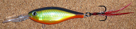 2007年ニューモデルです。 ラパラのニューコンセプトシリーズ X-Rapのシャッドバージョンで、見た目はSRRSと似ておりますが、中身も動きも別物です。 X-RAP同様スラッシュジャークでのリアクション狙いだけでなく、ラパラの他のシャッド同様ただ巻きやストップ&ゴーでもちゃんとしたアクションをこなす、優等生的ラパラです。 推測ですが、シーバスフィッシングにシャッドラップを使っていた方々の要望で出てきたモデルかもしれませんね。 なぜリアフックに羽根付きなのかは、今のところまだよくわかりませんが、単純に羽根がつついているだけでなく、ボディカラーによって羽根の色も違う(現在オレンジ・赤・白の3色を確認)ところに、もしかしたら深い意味があるのかも!? 1月の6センチモデルでの新登場に続き、8月には早くも8センチモデルが追加登場しました。 また、シャッドラップよろしくスモールリップのX-RAP SHAD SHALLOW(XRSH)も登場しましたが、シャッドラップを超えられなかったのかグラスシャッドラップ等と重なるモデルであったためか、廃版となってしまいました。。 |