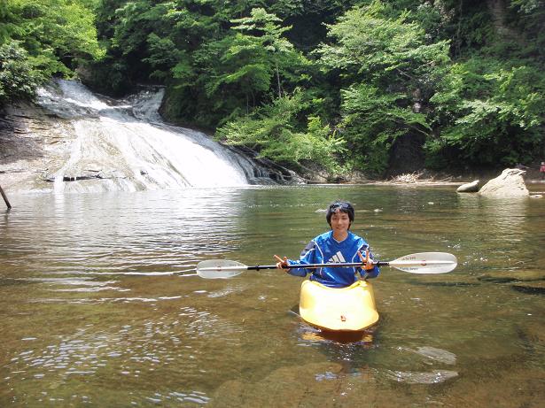 当初の計画では、この滝をカヤックでカッコ良く滑り降りてスタートするつもりだったが、 GWに遊びすぎで今にもギックリ腰になりそうなので、次回に先延ばし。