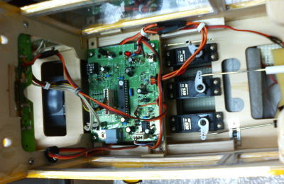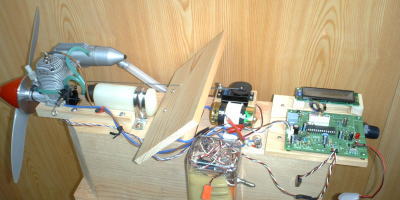 |  | Cubに搭載した制御回路 エンジンクランクの動きをホール素子で検出し 回転速度を検知します。これをフィードバックし エンジンスロットルサーボ信号のパルス幅を制御 して回転数をコントロールします | ||||||||||||