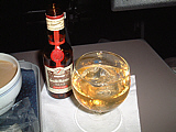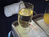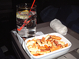 | どこに行くにはやはりノースだね〜(笑) | ラウンジ。アメリカ便が出た後なのでガラガラ | 生ビールを飲みながらピコピコしてました〜(笑) | ウェルカムドリンクはシャンパンを〜 | おつまみと一緒にジントニックを注文 | 夕食。牛肉のステーキを選択しました〜 |