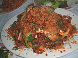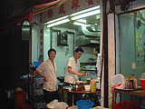 | ニンニクの芽。これまたムッチャ旨い!! | 看板メニューのカニ。ピリ辛です。ガーリックの量が・・・ | ビーフン。ちょっとしょっぱかったのが残念! | さすがに完食はできませんでした〜(汗) | お店の隣りが厨房になっているのですわ〜 | セブンイレブンでお買い物。夜は混んでいますよ〜! |
