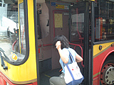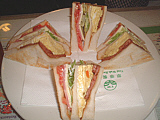| 朝からエクササイズ?するTOMOさん(笑) | のほちゃん帰国です〜 リムジン乗り場までお見送り | バスに乗り込むのほちゃん。気を付けてね〜! | 昼食は「スイカ レストラン」って言うトコロで〜 | 店内はすかいらーくみたいな感じ?(笑) | 海外在住の2人は定番?のサンドウィッチを注文 |