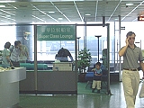 | 早朝なのにお見送りに来てくれたTOMO&つねつねさん | 朝から普通のバスも結構走っていますね〜 | チェックインカウンター。いつもいつも混んでいますねぇ | ノースのラウンジ入り口。分かりにくいかも? | 中は結構広いですよ〜 | 飲み物類は結構充実しています |