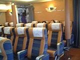 | イカだんご入りソバ?香港ではメジャーだとか | 鶏・椎茸なんかが入ったラーメン。普通か? | コレが一番美味しかった!じっくり煮込んであったよ! | マカオへは高速艇で1時間ですよ〜 | スーパークラスには、なんとラウンジまで!(笑) | スーパークラス内です。シートが大きくてリクライニングあり |