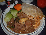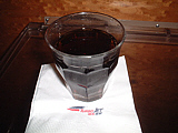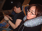 | 肉はムッチャ旨かった!日本と一緒だね! | カメラを持っていると、撮影禁止シールを貼られます(笑) | 帰りの軽食。ゼリーが変わっただけ・・・( ̄▽ ̄; | 飲み物はちゃんとグラスで持ってきてくれます | 結局儲けはねぇ・・・ナシですわねぇ・・・ | 私はすっかり疲れて寝てしまいましたよ〜 |