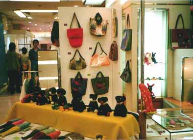 *今回のイベントで学んだことは...やはり実用的なものの方が売れてったし、展示方法でずいぶん売れ行きが変わったってことです。1日目、帽子はケースの中にぺたっと置いてたんやけど、2日目前に立体的に置くとかぶってみるって人が多かった。後、あみぐるみ達も、以前東京でやったときは手に取りにくかったせいか?とってみてくれる人も少なかったのに、今回は結構手にとってブーブーいわしてみたり、友達と好きなこと(感想)ゆ〜たりしてはった。それだけでも大収穫やったかも?売れ行きはまあまあやったけど、デザフェスよりはあきらかに上回っておりますぅ。(毛糸シーズン到来!?ってせいもあるけど)