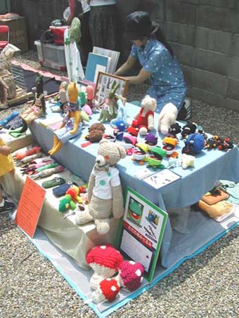 友達がやってるお店『南果』さんの前にある広場で5/15に開催された市。 駅からバスで行くくらい遠いし、お客さんもあつまるのかな?と 内心不安もあったけど、オープン同時に広場は人でいっぱいになった。 奈良の話題の?飲食店(パン屋さんとか、和菓子屋さんなんかな?いろいろ)とかも たくさん出てはったんで結構宣伝行き届いてたのかな??(謎) そんな中、奈良には何のゆかりもない私が、お店にぬいぐるみを置きだした IRIIRIさんとともに出店。ま、こんな感じ。↓ (ここにうつってるのは私じゃありませんのであしからず...) ![]() 東京で出展したデザインフェスタ初回、IRIIRIさんとやったんで ほんとこんな感じで出してたのを思い出した。なつかしー! ほぼ全部持ってきてみた。(さすがにワニマフはやめたけど) ![]() 私の子達は音なるものがほとんどなのです。 音なった方がおもろいやん? 小さい子が見に来たとき、なにげに「横から押したらぶ〜ぶ〜なくよ」 って普段やらんセールス?みたいなんやってみると、 「ぶ〜」ってないた時の子供の顔!びっくりするくらい目が輝いた! どうやらそのぶ〜ちゃんが子供の心がっちりわしずかんじゃったらしく、 買ってった後、ならして遊んでたのか?同じくらいの子がきて 「黒のぶたのあみぐるみください!」って大声で言って買ってった。 2人は仲良しの友達やったらしい。 その後も、ちょくちょくやってきたけど、 さすがに他は買っていかんかったけどね。(笑) カスタネット・デ・カエルもお子ちゃまが。 「どれがいい?」って聞かれた子供はなんと、 パンダのを選んだのですぅ。 「お客様、お目が高い!」って言いそうなったわ。(笑) この時、鳴り物系が好評やったらしく、隣のブースにあった木のおもちゃの 拍子木は男の子に人気あったよ。 これでこの町も火事の心配なしよね〜♪(夜まわりはせんか?(笑)) 障害者の人が書いた物を商品にしてるとこの物らしい。 あやしくかわいいので買っちゃった〜♪ ![]() ま、途中雨降ってきてあわあわしたけどねぇ...。 しかも、雨で目的の店の人ひきあげたんで予定してた食べ物食べれず...。 帽子やかばんもこの日だいぶ買ってってくれたし、 ワニ顔携帯ケースも1つやけど売れました。 もっかいワニ顔携帯ケースはつくります。 あと、iPod シャッフルケースもつくる予定。 何の形にするかは考え中だす。 他にもちょっとイメージがわいた物があるのだ...ふふふ...。(あやしげ?) ここではじめてただあみに出くわしちゃった方々、 ドナドナド〜ナ〜ド〜ナ〜♪してくれた方々、 ありがとございました〜♪感謝、感謝! これからも、IRIIRIさんともどもご贔屓に! *ちなみにIRIIRIさんのブツはいくつか「南果」におりまぞ。 |