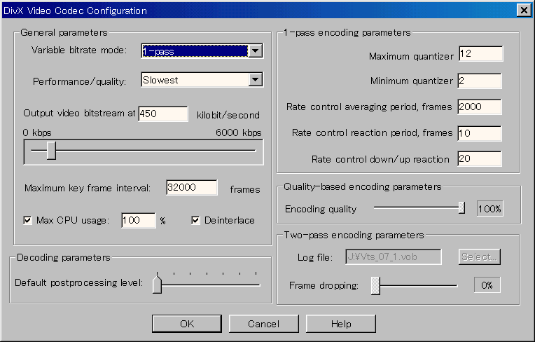 設定ボタンを押し、DivX Video Codec Configuretion の設定後、 OK