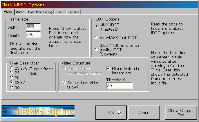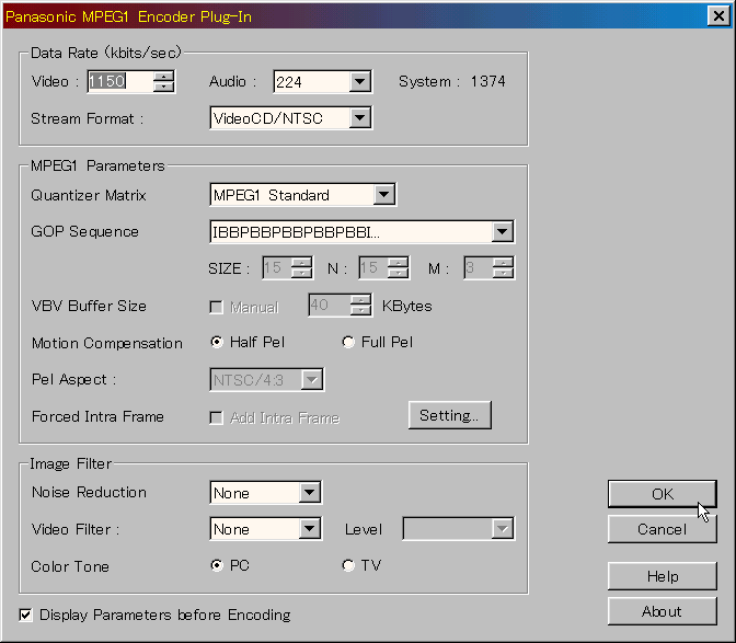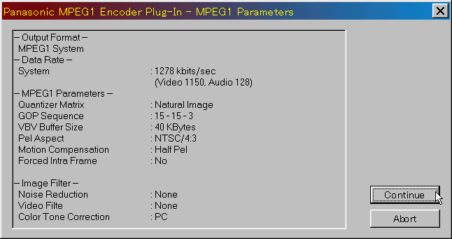 options ⇒ Select Output Format ⇒ Panasonic MPEG1 を選択します。