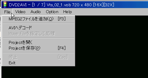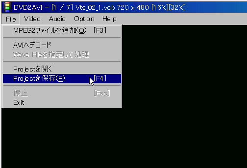 DVD2AVI (VOBファイルをプロジェクト保存する為に使用します。)
