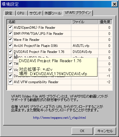 TMPGEnc.プロジェクトファイル用VFAPI Plug - In