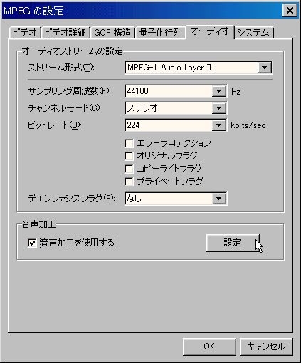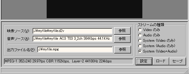 step 3 のビデオCD規格 「映像1152Kbps. 音声224Kbps」 での設定を、