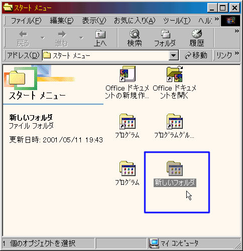 新しいフォルダの名前を以下のように変更します。 表示 2参照