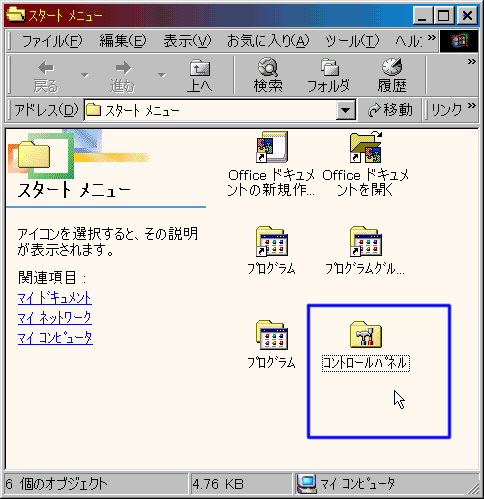 起動するには、スタート ⇒ 設定 ⇒ コントロールパネル ⇒ 起動アイコン
