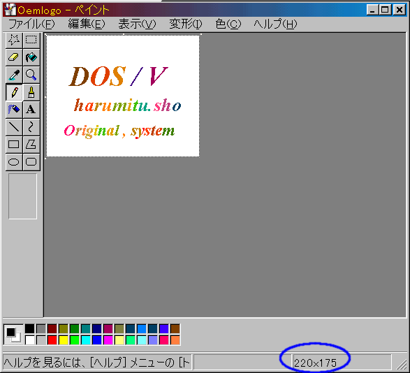 このサイズ内にイメージ画像を、作成し 「 oemlogo.bmp 」というファイル名で、