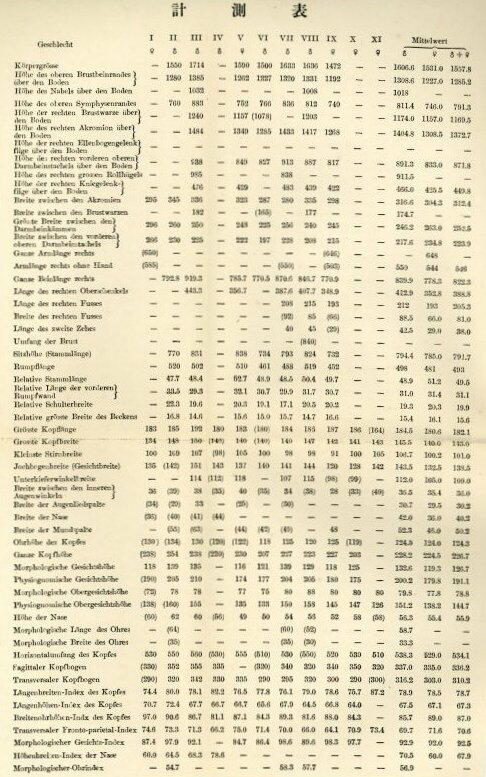 これ等合計11体の高昌国ミイラの計測は巻末に附する表の示す通りである。その中で主要なる数字に附して述べると次の如くである。