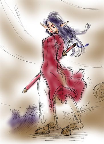 ・中国映画でよくある風で服がバサバサとたなびいているのをイメージしました。顔はあるゲームのパクリなのは内緒(笑)。