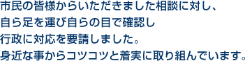 十日市町から太田小学校に通学されている児童のご両親から、名神南の市道の交通量が多くて危険、歩道に安全対策を講じてほしいとの要望をいただきました。