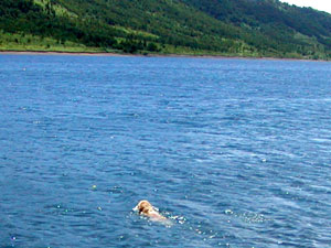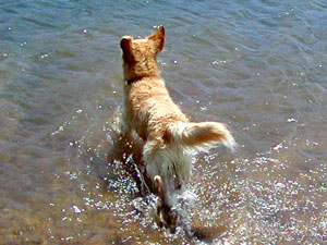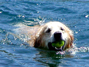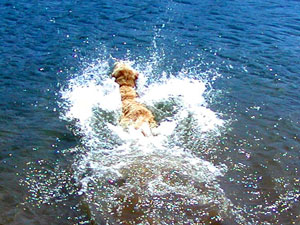 | ウォータードッグと呼ばれる水鳥などの狩猟の回収犬には水に対する特別な思い入れがあるのかもしれません。ウォータードッグの血を引く我家の愛犬ナッツを見ていると、そう思わずにはいられません。 毎年、夏になると彼を芦ノ湖や富士五湖などへ泳ぎに連れて行きましたが、長野に移って来てからは近くにきれいな川や湖があるのでお散歩代わりによく出かけます。 彼は初めて行く川や湖でも、まだ水辺も見えない辺りからすでに興奮し、鼻を鳴らしてそわそわし始めます。犬の嗅覚は人間の1万〜10万倍といわれていますが、ウォータードッグは大好きな水の匂いをはるか遠くから察知できるのかもしれません。 また、この犬種は足に水かきが付いているので、泳ぎが大変得意です。といっても最初からうまく泳げるわけではなく、初めて水に入った時は手足をバタつかせてまるで溺れているようでした。それが今ではボールを投げてやると勢いよく水中に飛び込みボールの回収に向かいます。その泳ぎはウォータードッグと呼ぶのにふさわしいパワフルな犬かきです。 |