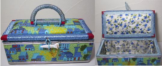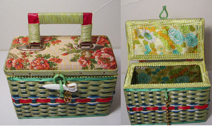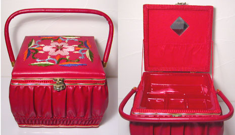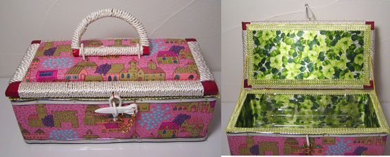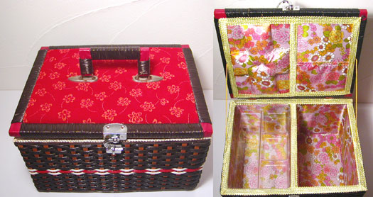 | @商品aFSB-006 A商品名:ソーイングボックス#6 Bサイズ:幅26cm(取っ手含む)×奥行21cm×深さ18cm C価格:5,500円 Dその他:小物用のトレイ付,美品 |