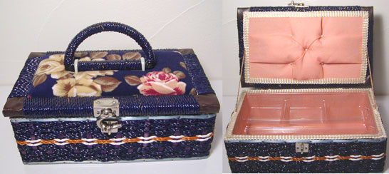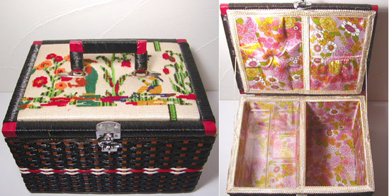 @商品aFSB-009 A商品名:ソーイングボックス#9 Bサイズ:幅31cm×奥行16cm×深さ13cm C価格:5,000円 Dその他:小物用のトレイ付,美品 |