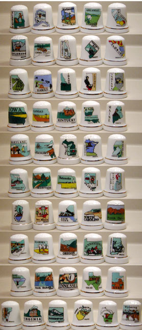 Set アメリカの50州とワシントンDCを加えた51個セットのシンブルですです。各州のシンボルやランドマークがデザインされています。 |